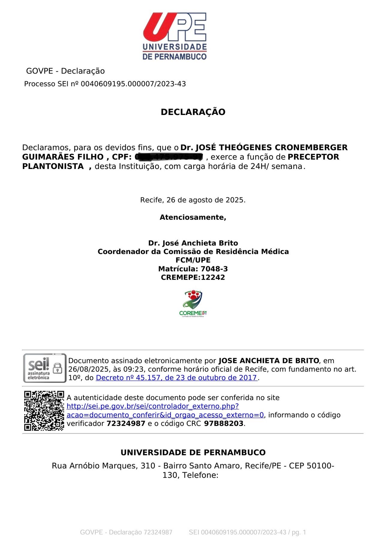 Dos cuidados do medico dr José Teogenes que foram muitos.